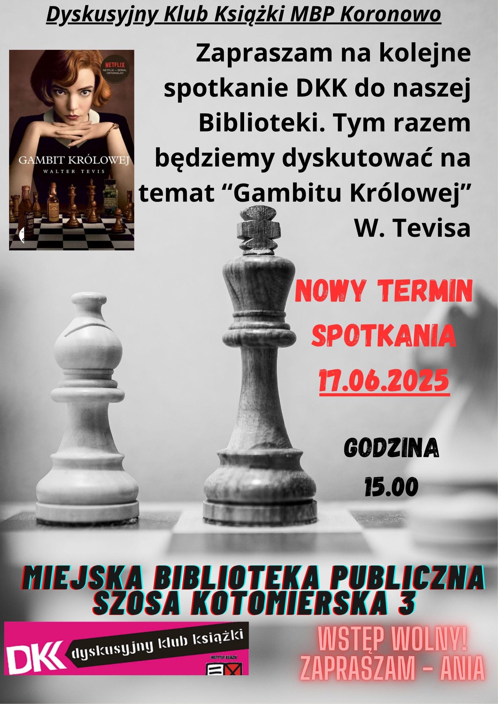 Zmiana terminu spotkania Dyskusyjnego Klubu Książki. Widzimy się 17 czerwca 2025 r. Godzina 15.00, tradycyjnie w czytelni
